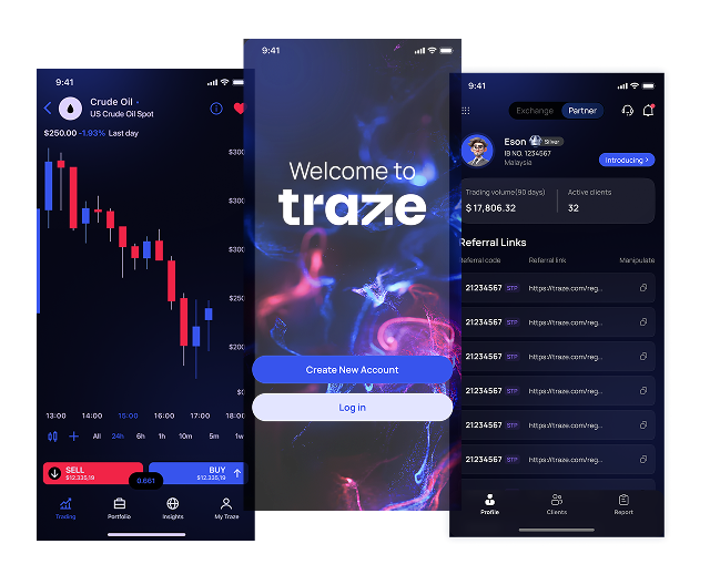 Traze helps you grow your capital with market news and insights with 24/5 live market access. Share in investments and success, trading markets like Crypto, Forex, Shares, and Bullion. Experience an accessible world of trading by joining Traze.